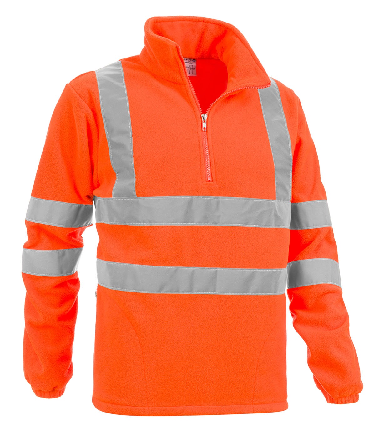 Maglietta alta visibilità manica lunga, 100% poliestere bande riflettenti,antipilling,zip al collo