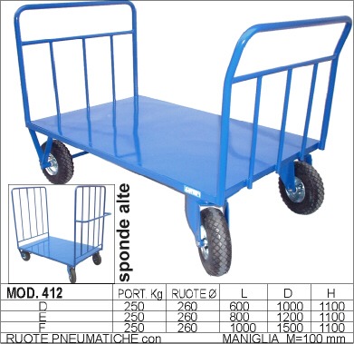 Carrello 2 Sponde Mod. 412 con ruote pneumatiche