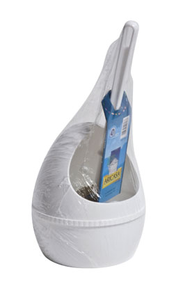 Portascopino WC completo di scopino in polipropilene, lavabile sino a 90°.