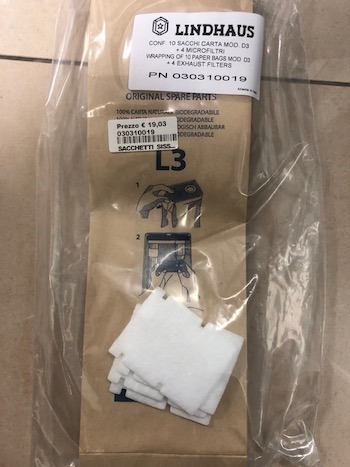 Sacchetti Lindhaus Sissy in carta cf. 10 pz + 4 microfiltri uscita aria